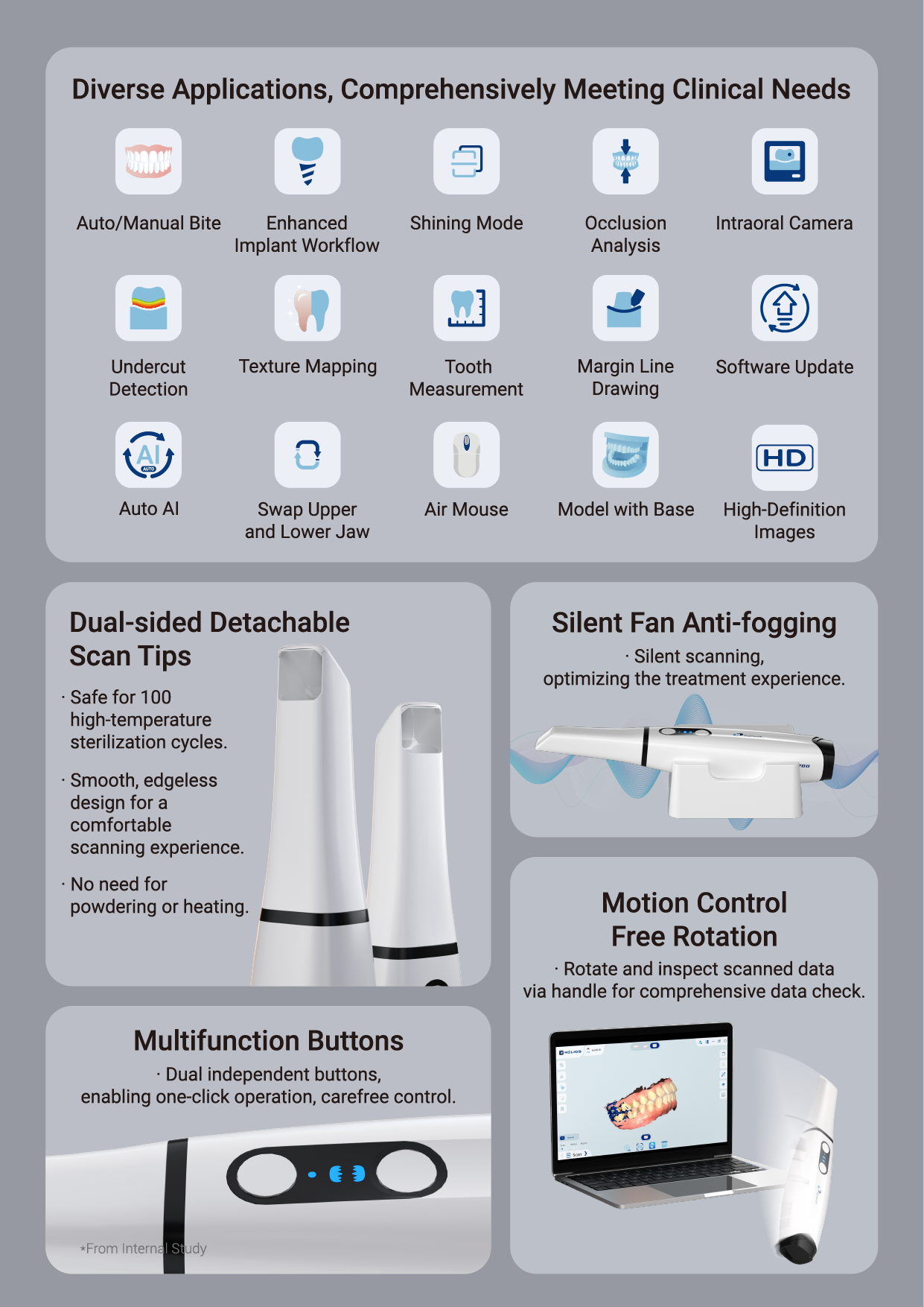 - Един от най-точните и бързи скенери на пазара – сканиране на цяла челюст за под 30 секунди.